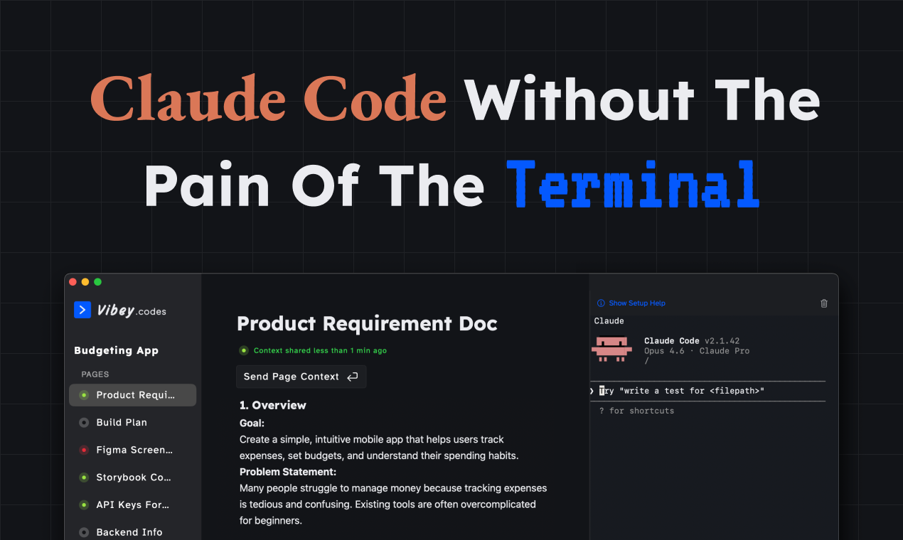 Before Vibey, my workflow was scattered across Coda, Google Docs, markdown files, and Figma links, constantly copying, pasting, and jumping from window to window. Now I can plan, write, and prompt without fighting the terminal.